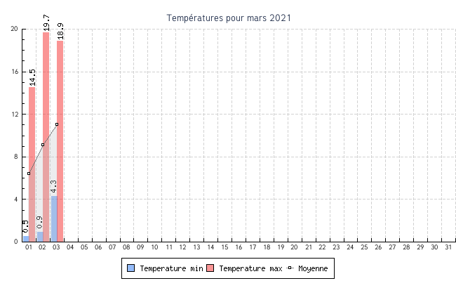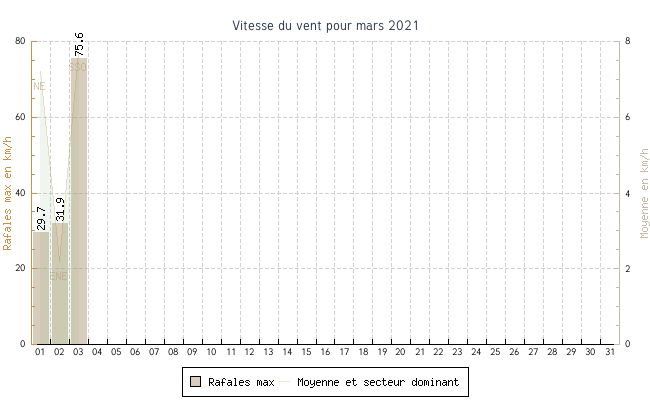 | 03 | 4.3 °C | 18.9 °C | 11.0 °C | 7.7 km/h (75.6 km/h) | SSO |